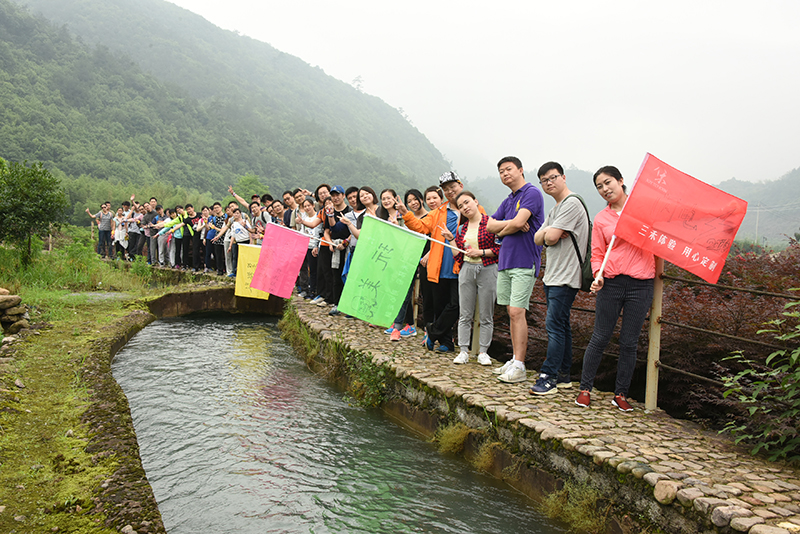 On May 28, the 2016 Enterprise Spring Hiking was held in scenic Luci Town, Tonglu City with the theme of Keep working, the dream never ceases. About 50 people attended. It had been raining heavily for days until Friday morning it turned to drizzle, yet far from stop, The tedious rain, however, did not ruin the attendants’ enthusiasm and high spirits. At 9 am the hiking started from the riverside, one of the most beautiful roads along Fuchun River.